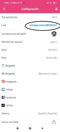 • Puedes dirigirte a las configuraciones en la parte superior de la app y copiar tu link para que los compartas en las redes sociales y así las personas te envíen audios. Mientras mas te escriban a ti primero, mucho mas ganaras.